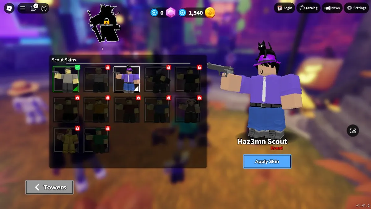 - HAS3MN Scout Skin in Tower Defense Simulator - تم تحقيقه عن طريق التغلب على الوضع السهل أو الصعب.
