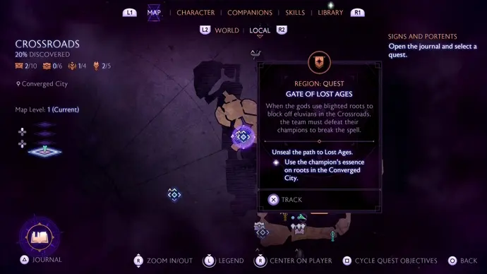 Once you have Quyn's essence, return to the Gate of Lost Ages in the Converged City area of The Crossroads and use it to unlock the path ahead. The enemies here are mostly weak to Cold and resistant to Fire. Davrin and Taash can use Necrosis abilities if your Rook can't.