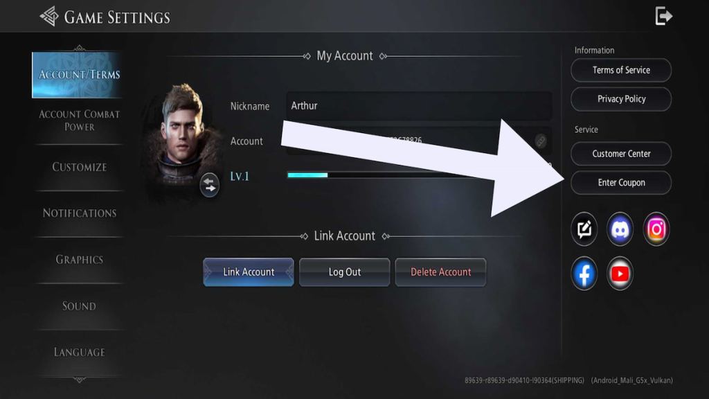 The steps for redeeming King Arthur Legends Rise codes in-game are below if you're not claiming goodies from the Netmarble Coupon Event site: