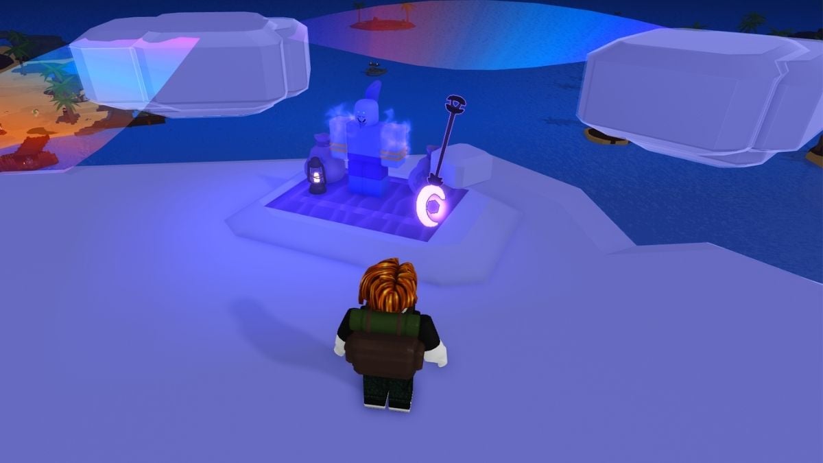 Berbeda dengan dua sekop lainnya yang dapat Anda buka di lahan badut, sekop pelihat terletak sedikit lebih jauh ke dalam lanskap. Pertama -tama Anda harus mencapai piramida di belakang pulau untuk membeli sekop ini.