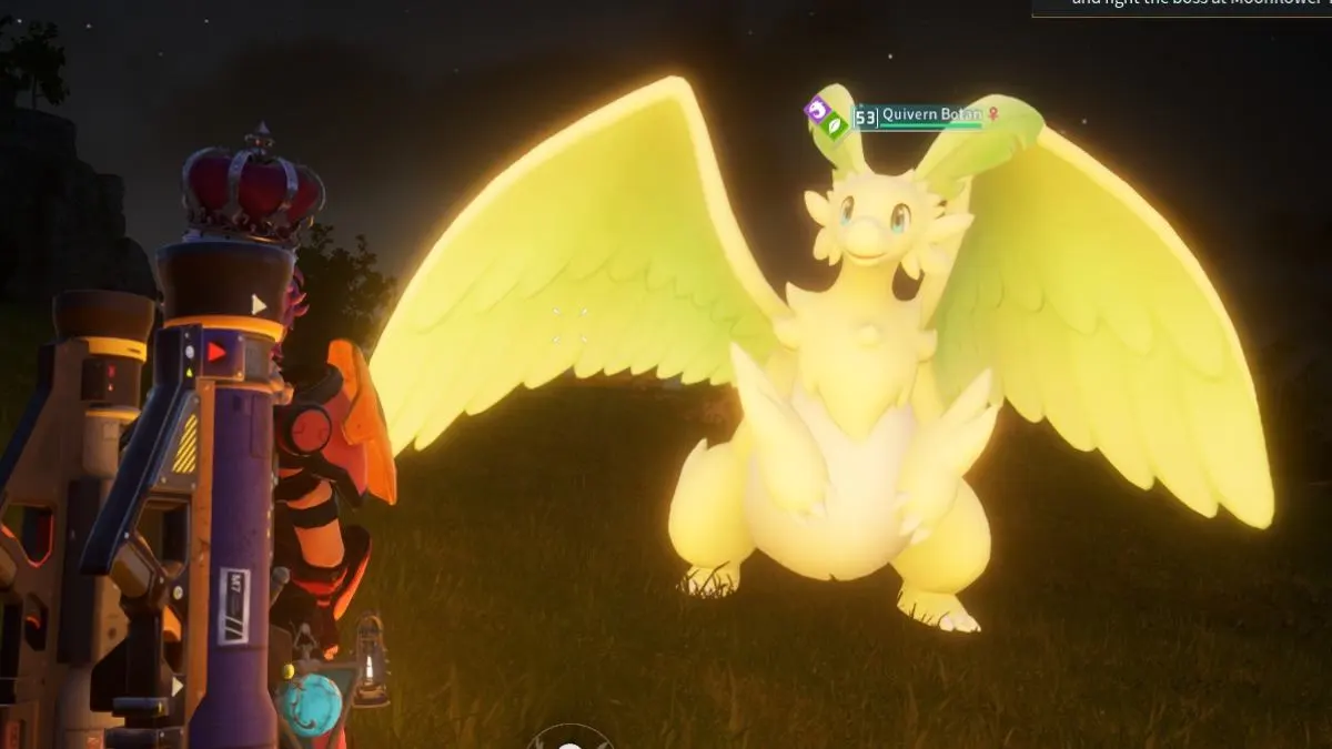 Quivern Botan is a Dragon and Grass-type Pal that you can find near the cliffs and Moonflower Tower at -625,175. There will usually be a normal Quivern around, so you can catch two dragons with one Rocket Launcher. This is a Pal that can be ridden and enhance your Grass attacks.