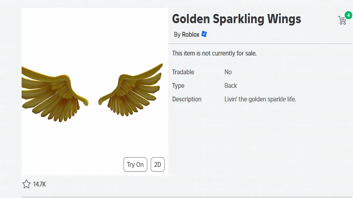 - Description: A pair of golden wings that will make you look like an Angel.