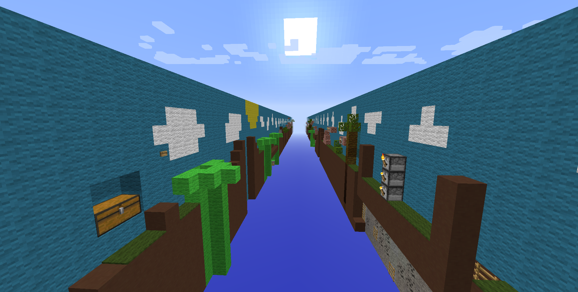 本地图将世界知名的 5 大游戏: 传送枪, 超级玛丽, 口袋妖怪, 黑道圣徒和塞尔达传说全部塞到一张 minecraft 地图中, 加入跑酷的元素。加入跑酷的元素。