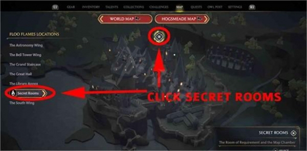 3. หลังจากปลดล็อคพล็อตผู้เล่นสามารถ คลิก ไอคอน Sun ด้านบน ในอินเตอร์เฟสแผนที่ Hogwarts เพื่อส่งผ่านทางไกลไปยัง House of รับผิดชอบคำขอ